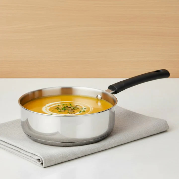 Now experience taste, high performance and health all in one place. The new DONIV Stainless Steel Sandwich Bottom Solitaire Fry Pan makes cooking safer and your health better, While the stainless steel ensures sturdiness and durability the sandwich bottom takes care of even heat distribution and prevents burnt food. All in all smart cookware for a smart kitchen.