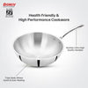 Doniv Titanium Triply Wok inner layer is made of Food Grade Stainless Steel (SS304), middle layer is aluminium for energy efficiency & quick, uniform heat distribution. Outer (SS430) makes it compatible on gas & induction for modern day cooking. What more one requires than a Smart Cookware from Doniv !!