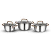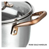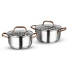 This Oxford set of two comes with exquisitely polished rose gold handles that are stylize your dining experience while providing maximum durability and comfort. The addional glass lids with steam vents facilitate faster cooking and easy monitoring during the cooking process. It is compatible across all heating platforms like gas, induction, ceramic, infrared and hotplate.