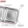 The VINOD Go Tiffin 2 Compartment in blue is designed to help you carry balanced meals in a neat and organised way. Its two-compartment design keeps different food items separate, making it easier to pack combinations like rice and vegetables, snacks and fruits, or a complete light meal. The inner tray is made from food-grade stainless steel, which is BPA-free, healthy, and suitable for regular use. This makes the Go Tiffin a stainless steel lunch box, a steel meal container, and also suitable as a Steel lunch box under Rs. 1000 for everyday meal carrying at school, office, travel, or outdoor activities.