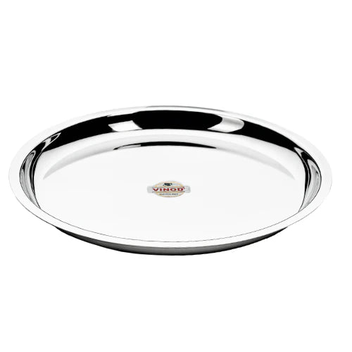 Vinod Stainless Steel New Tat Thali has an attractive design & mirror finishing. The thalis are made up of good quality of stainless steel and are light in weight. Serve & enjoy your favorite meal without any fear of its falling or scattering. These plates are non breakable and have a long life. They are compact in size and are easy to store in kitchen shelves and cupboards. As the thalis are made up of stainless steel, you can serve hot food too. They are easy to clean and maintain. The plates are dishwasher safe. Traditional is New Modern. This dinner plate is designed from 100% food-grade stainless steel with a sturdy Heavy 22 Gauge Thickness. These Thalis are food-safe, durable and ideal for everyday use.